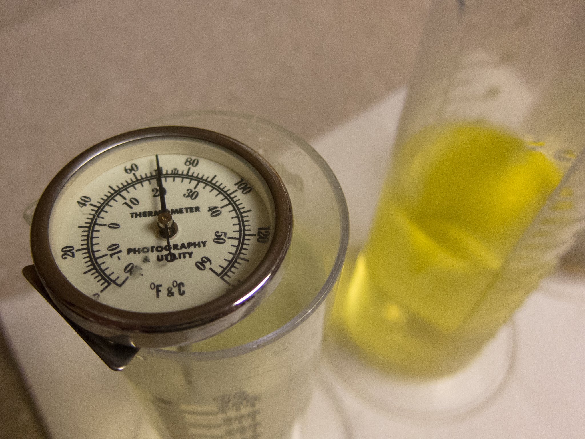 In the winter, "room temperature" in my house is around 20 degrees C so there isn't anything special I need to do to maintain the correct temperature. However, during the summer the house is a bit warmer so I will put each of the cylinders in a water bath to keep them around 20 degrees.